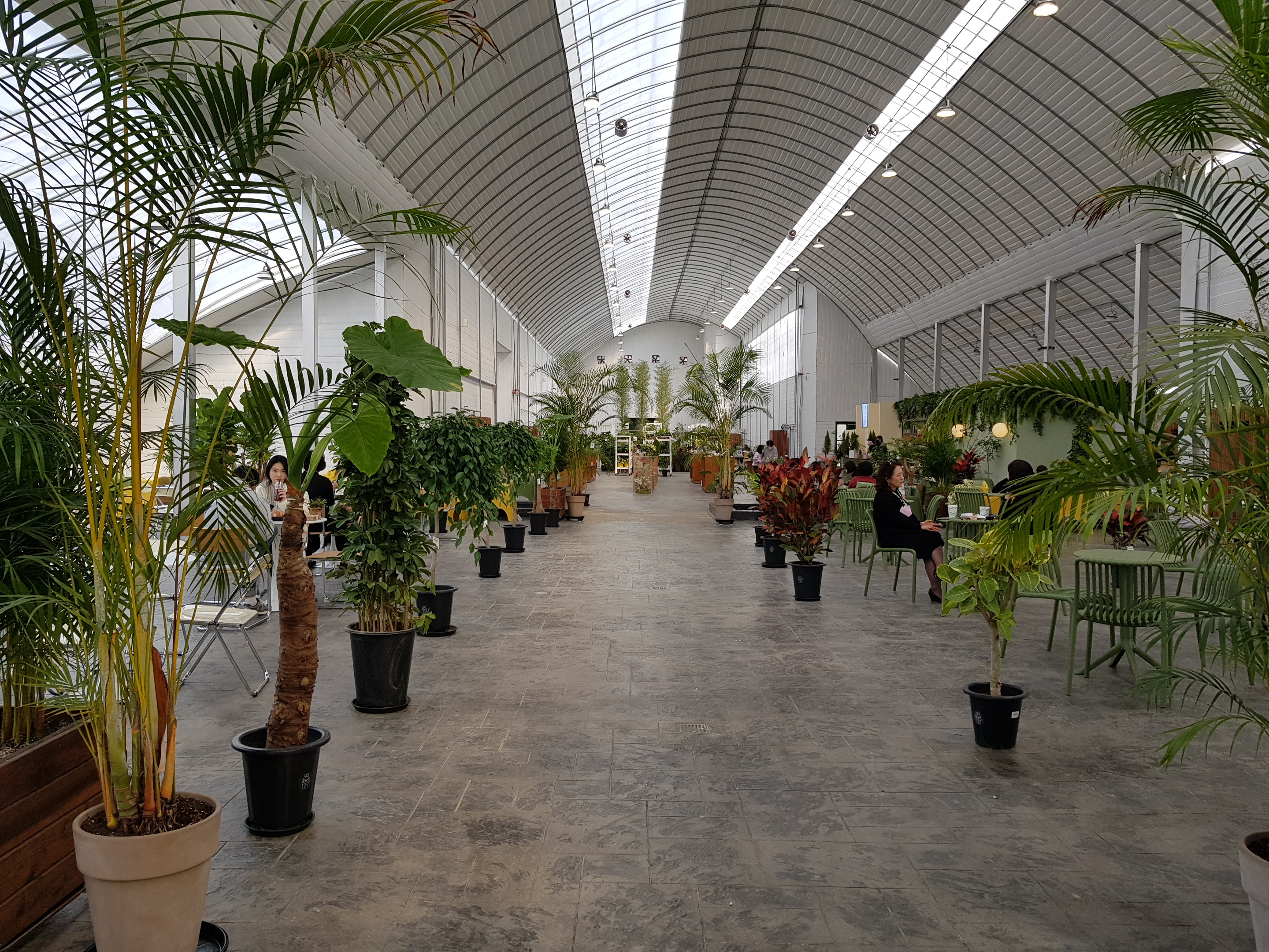 높은 천정과 부드럽게 들어오는 빛, 그리고 여기저기 놓여있는 큰 화분들 덕에 실제로도 온실 안에 들어와 있는 듯한 기분이 들더군요~