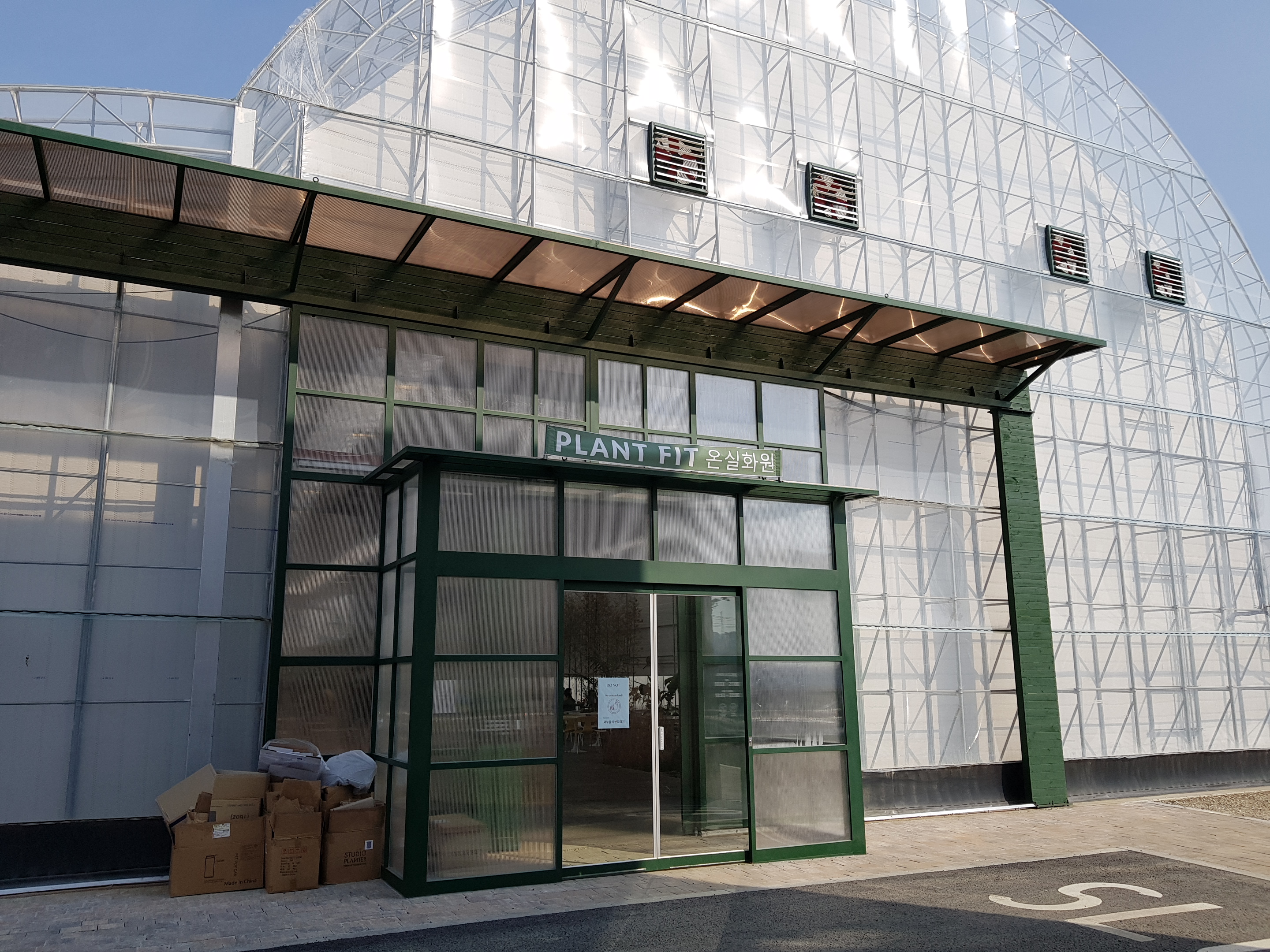 오른쪽 건물이 커피와 빵을 살 수 있는 '어반리프'이고 왼쪽 온실처럼 생긴 곳이 '플랜트 핏'으로 구입한 음료와 빵을 먹을 수 있는 곳이고요.