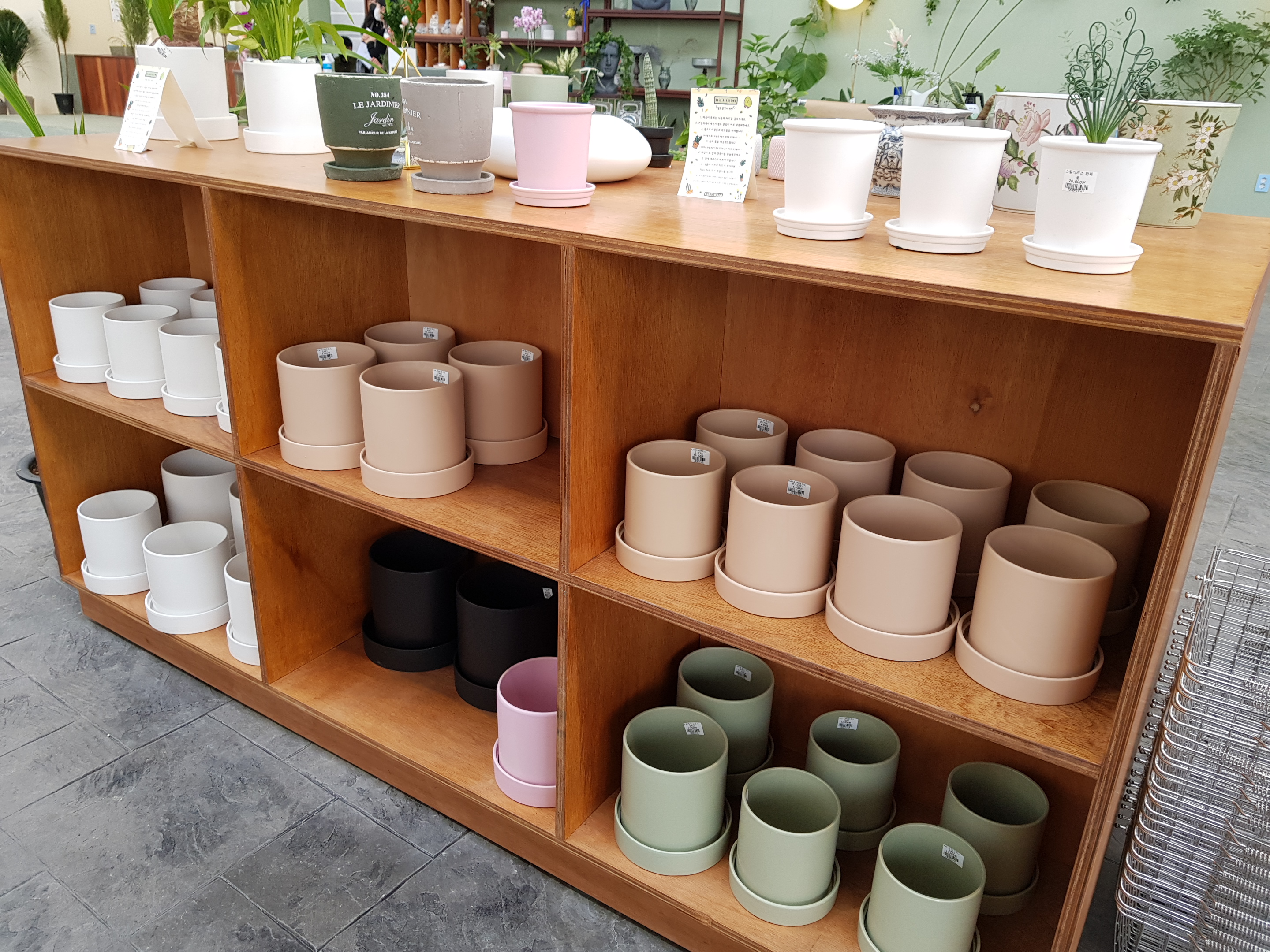 화분들도 다양하에 준비되어 있어서 다양한 색상의 화분들도 있고