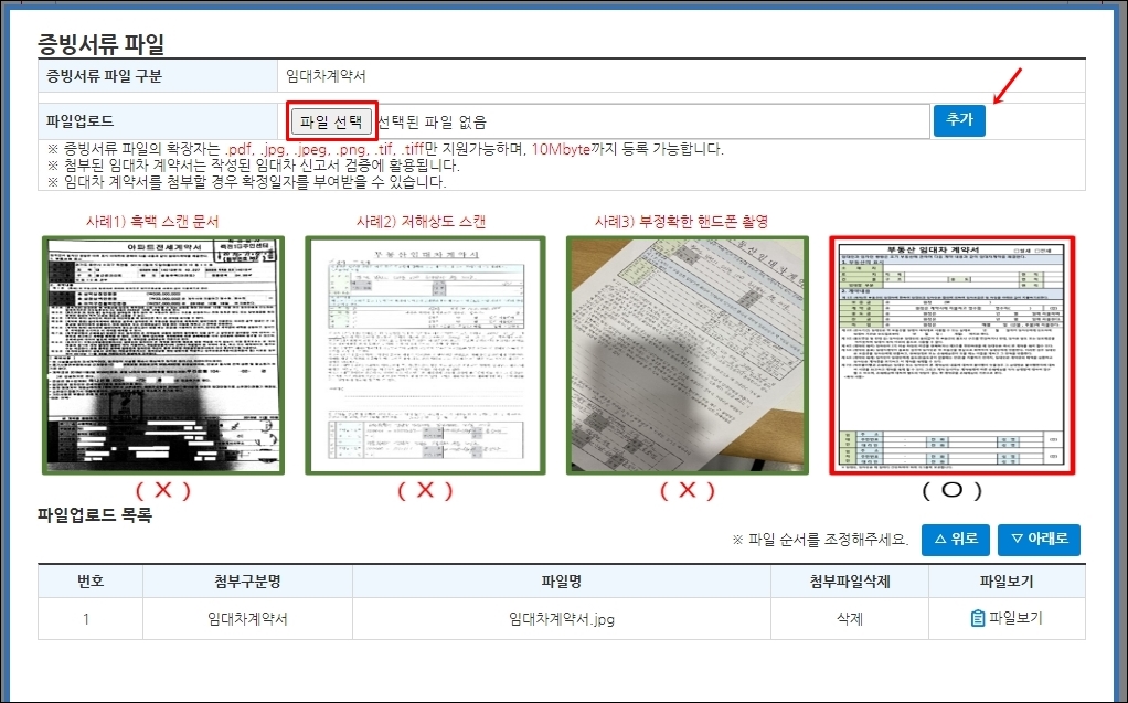 먼저 임대차계약서를 첨부해야 하는데 스캔을 하고 파일을 추가해주시면 됩니다.